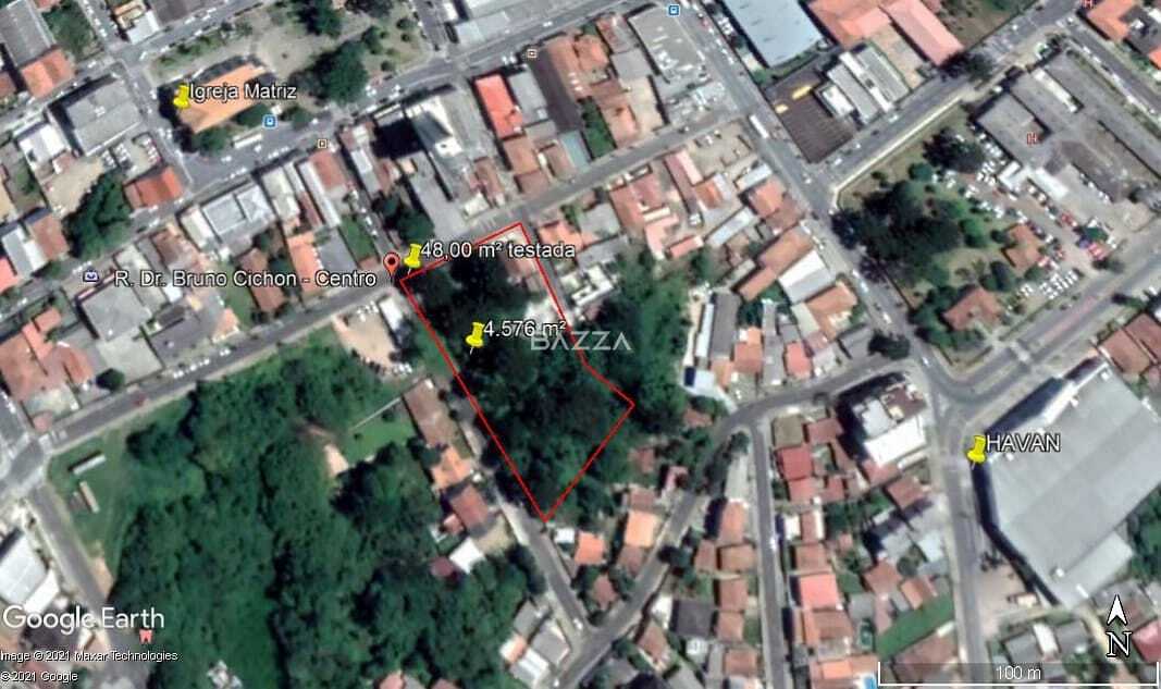 Terreno com 4.576m² de área total, sendo 48,34m de frente, lado direito com 115,30m, lado esquerdo com 78,64m e aproximadamente 60,25m de fundos.